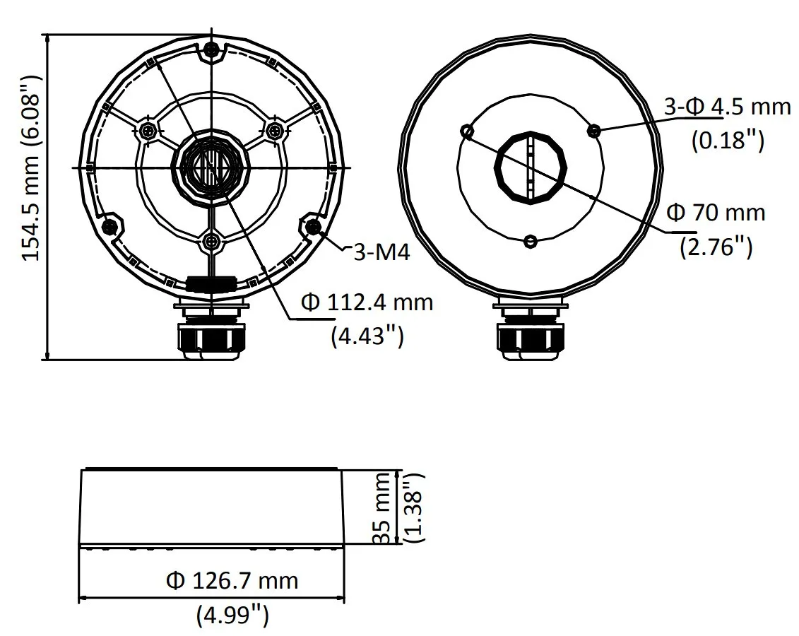 Metalowa puszka przyłączeniowa umożliwia ukrycie przewodów w przypadku montażu kamer serii: