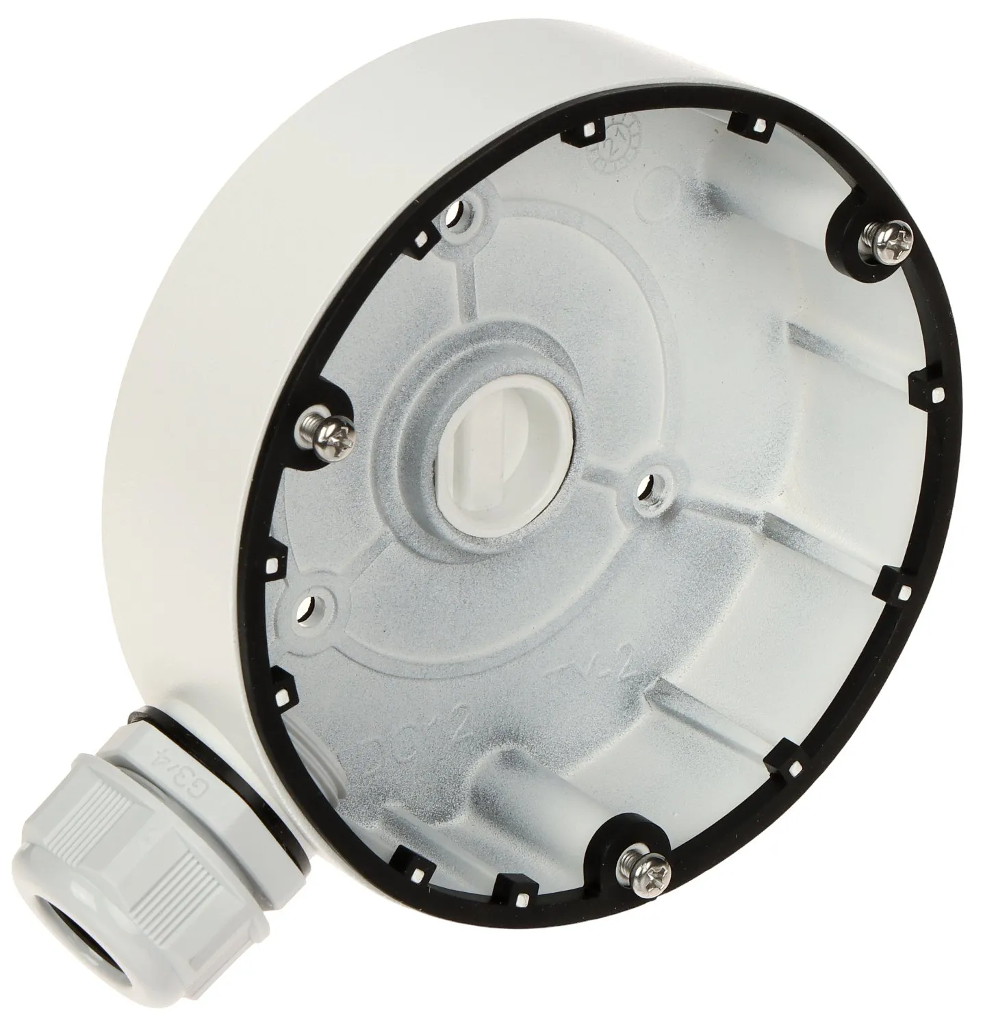 Puszka montażowa Hikvision DS-1280ZJ-DM8 to solidne akcesorium przeznaczone do montażu kamer kopułkowych, w tym kamer wandaloodpornych.
