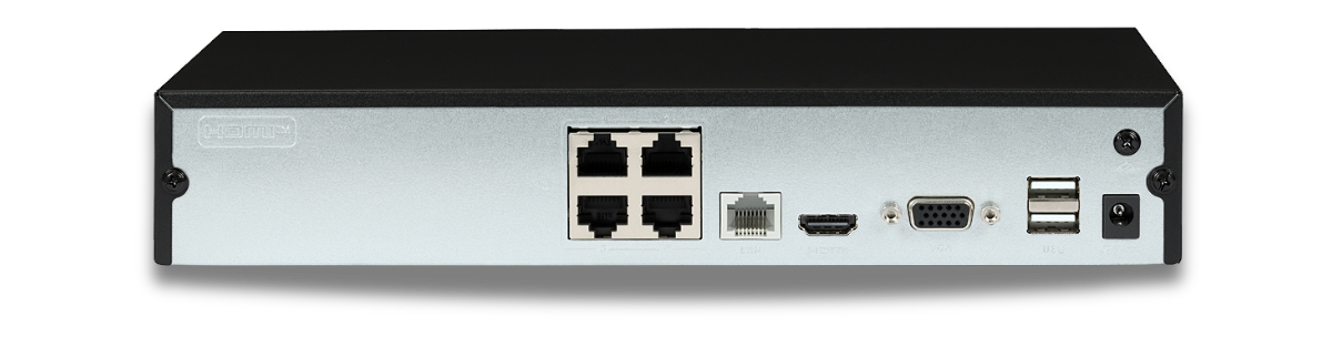 wbudowane 4 niezależne porty PoE do bezpośredniego podłączenia kamer.