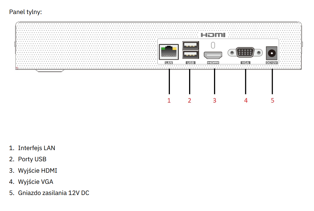Port sieciowy LAN 10/100 Mbps do komunikacji z kamerami i zdalnego dostępu.