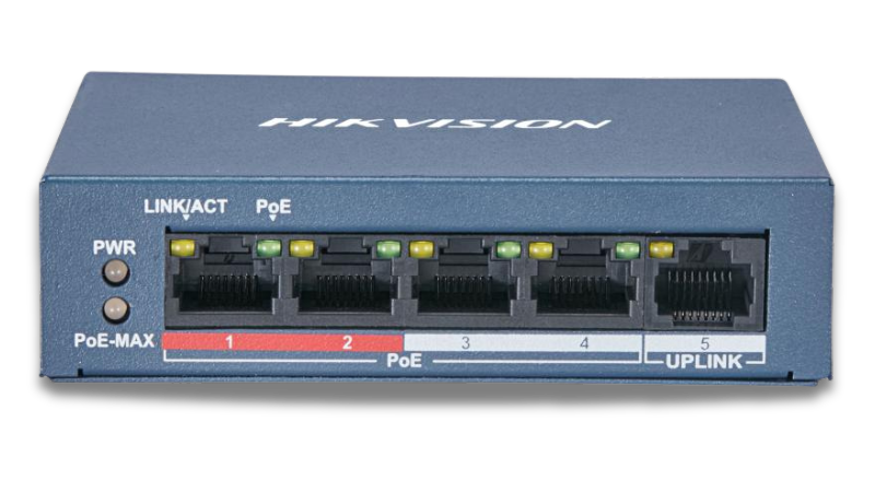 Switch Hikvision DS-3E0105P-E/M(B) to doskonały wybór do monitoringu IP w domu, biurze i małej firmie, gdzie potrzebne jest proste i niezawodne rozwiązanie do podłączenia kilku kamer IP oraz rejestratora NVR.
