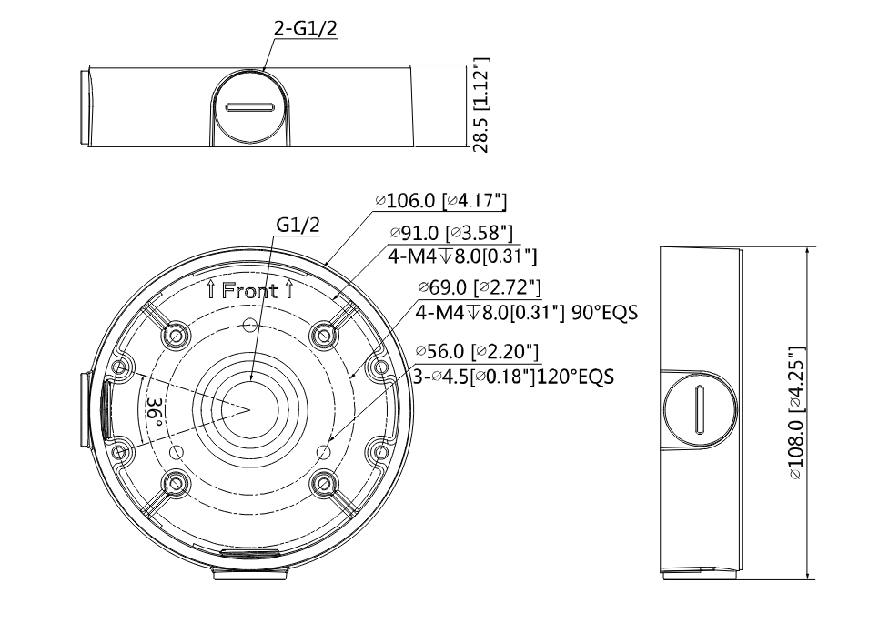 Uchwyt sufitowy Dahua PFA139 to kompaktowa puszka montażowa, przeznaczona do kamer monitoringu. Umożliwia bezpieczny i estetyczny montaż kamer oraz prowadzenie przewodów w sposób chroniący je przed wilgocią, kurzem i uszkodzeniami mechanicznymi.